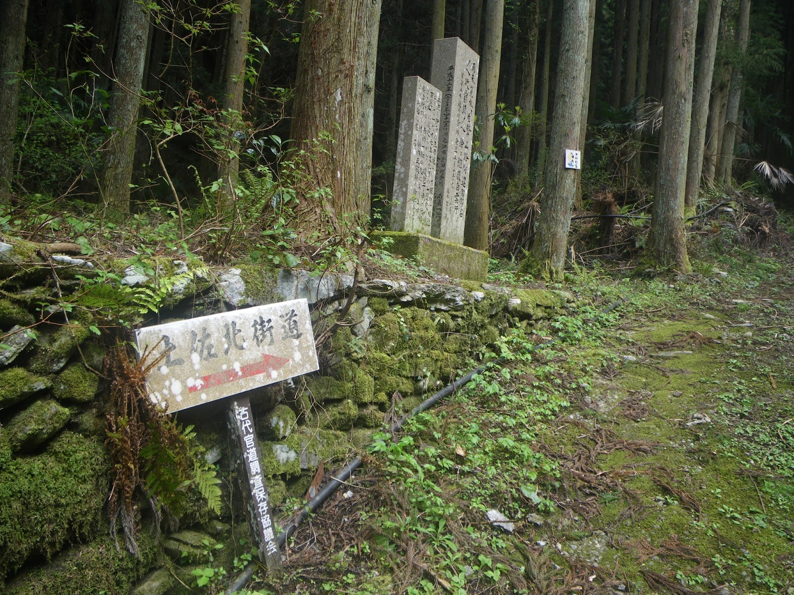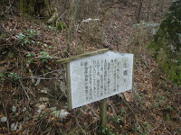 西側に通じる道は木地師の里木地屋への道、東側への道が犬の墓道(立川陣屋と新瀬川の脇本陣への犬の飛脚の墓)」との説明。