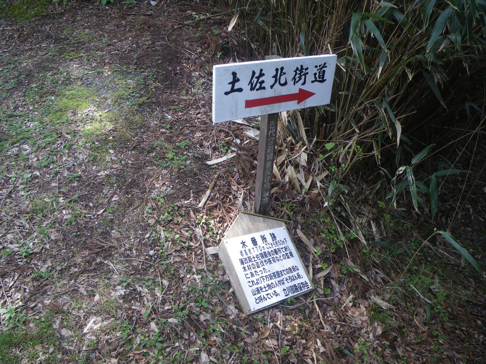 土佐北街道は、土佐藩参勤交代の道として、享保3年(1718)の頃、古代の官道である南海道跡を基本に整備された道である。土佐藩の参勤交代はそれ以前、東土佐街道、通称野根山街道経由で阿波から海路を利用したようであるが、そのルートは海任せ・天候任せ。順調に進めば20日ほどで江戸に着いたというが、潮待ちなどにより50日ほどかかることもあった、と言う。