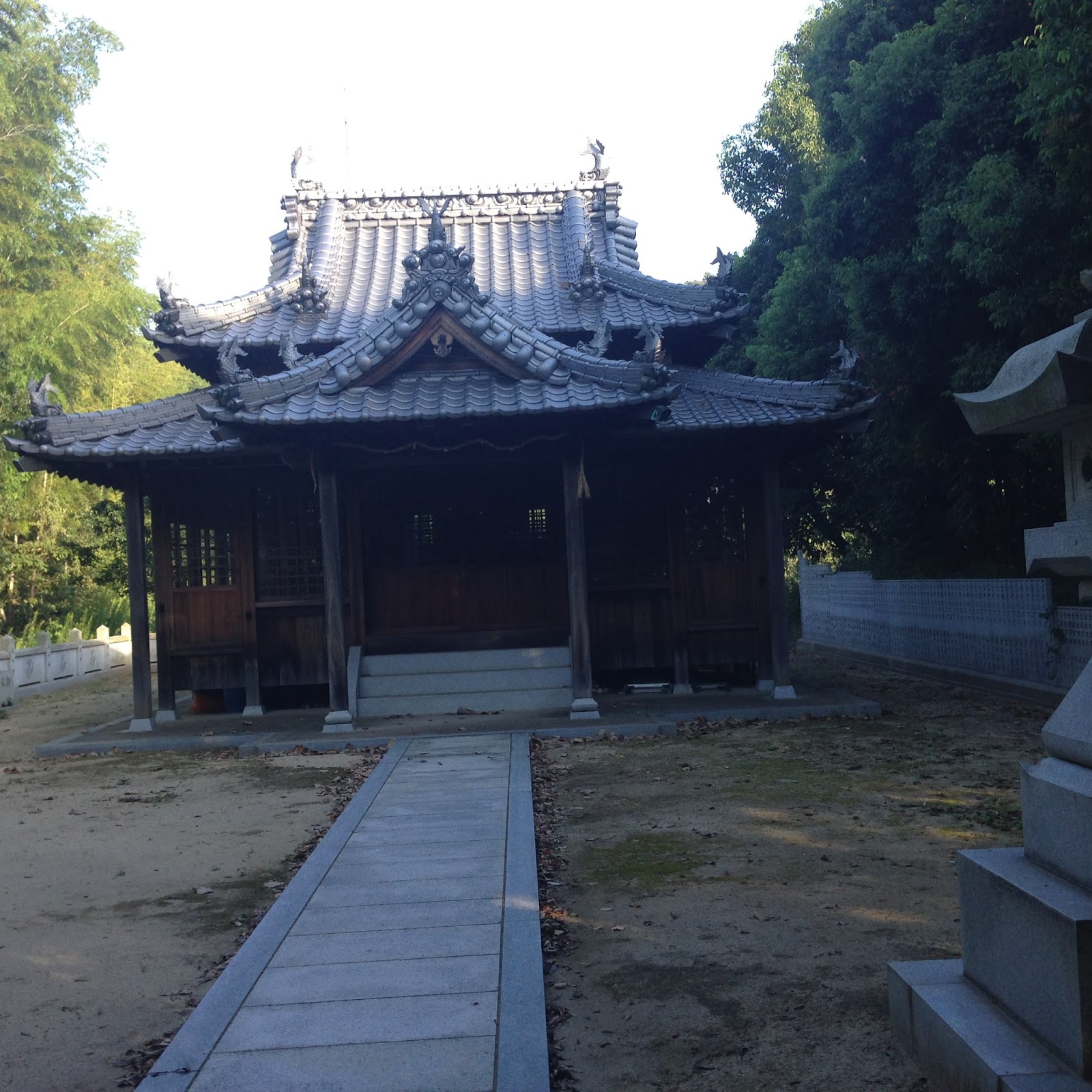 神社下の道脇に車を停め社にお参り。手書きの素朴な案内があり、「主祭神は大己貴命、事代主命、素戔嗚尊で、いつごろできたかはっきりしないが、玉生八幡神社末社としておかれていた。来島水軍時代、来島に大根城を置いたが、来島城を守りぬくため、そのまわりに幾多の城砦を築造したが、その砦群の一つではないかと思われる」とあった。