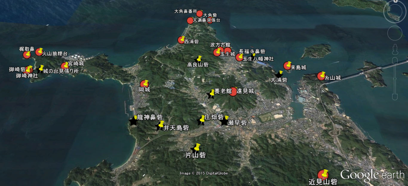 大角の砦>大角鼻番所跡>天満鼻見張代跡>西浦砦(西浦荒神社)
