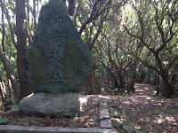 山道を進むとほどなく歌碑。「この山上を火山という 水軍の攻防松籟に聞くのみ 狼火焚く舟手たちの 道あれば 山桃の熟れて潮騒にゆるる」と刻まれる、と案内にあった。