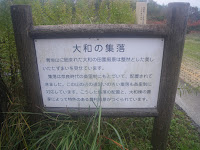 その歌碑の横に「大和の集落 青垣山に囲まれた大和の田園風景は整然とした美しいたたずまいを見せています。