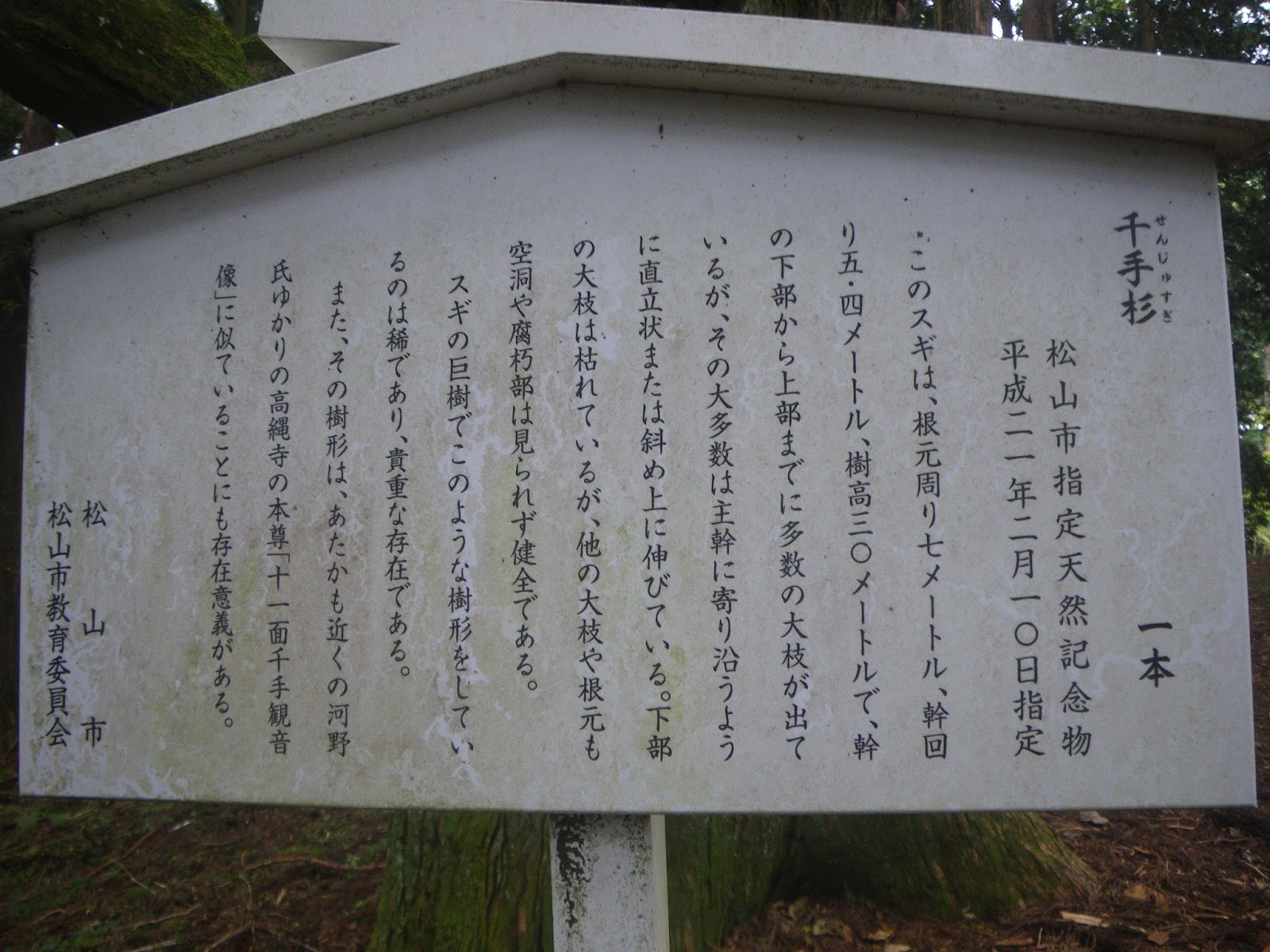 また、その樹形は、あたかも近くの河野氏ゆかりの高縄寺の本尊「十一面千手観音立像」に似ていることにも存在意義がある 松山市 松山市教育委員会」とあった。