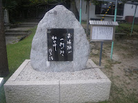 境内に要石。案内には「この地方では、昔から地底に大鯰がいて、常には静まっているが目覚めてあばれだすと地震となって大地が震動すると考えられていた。