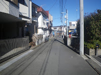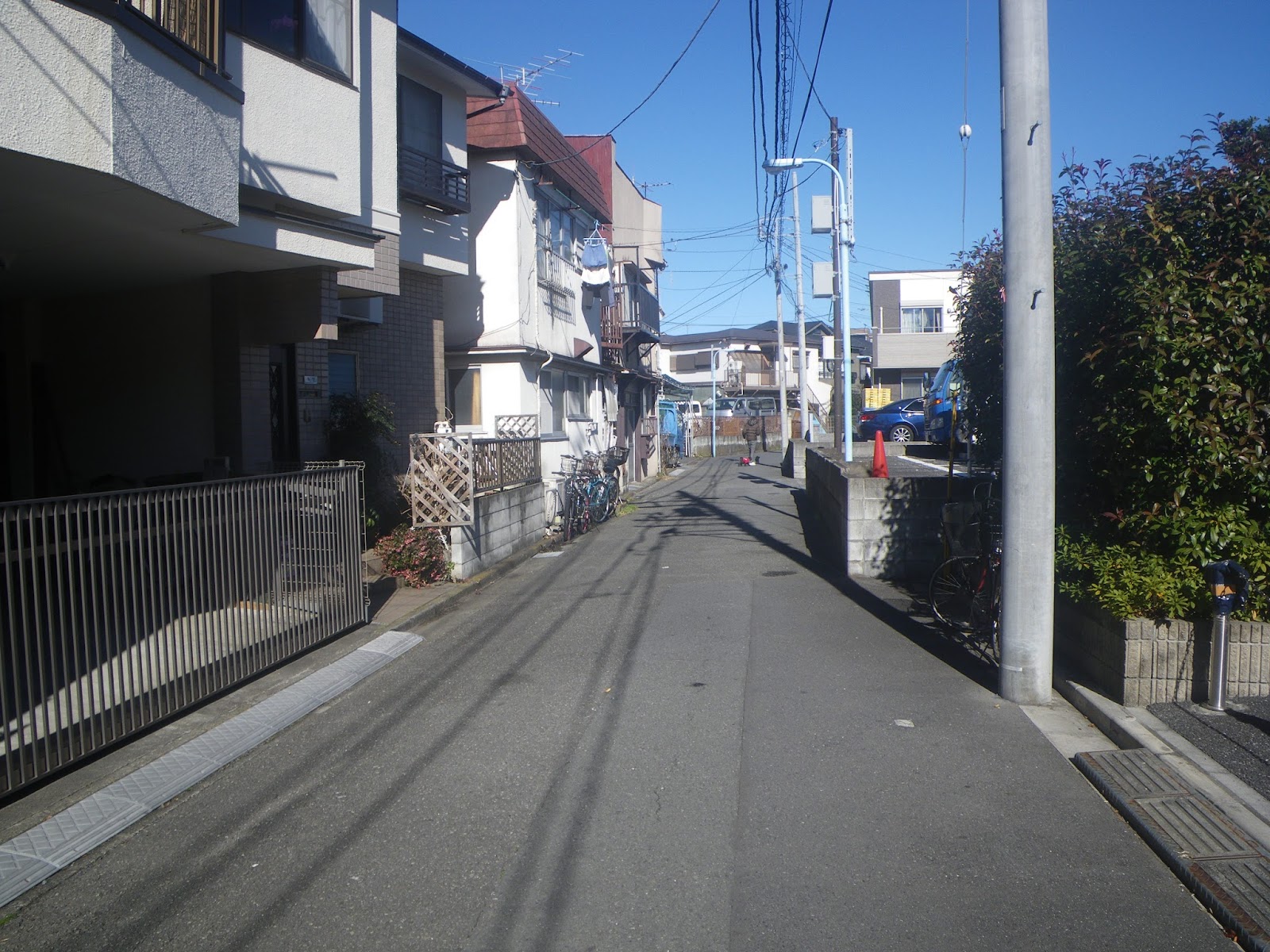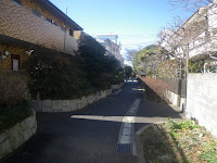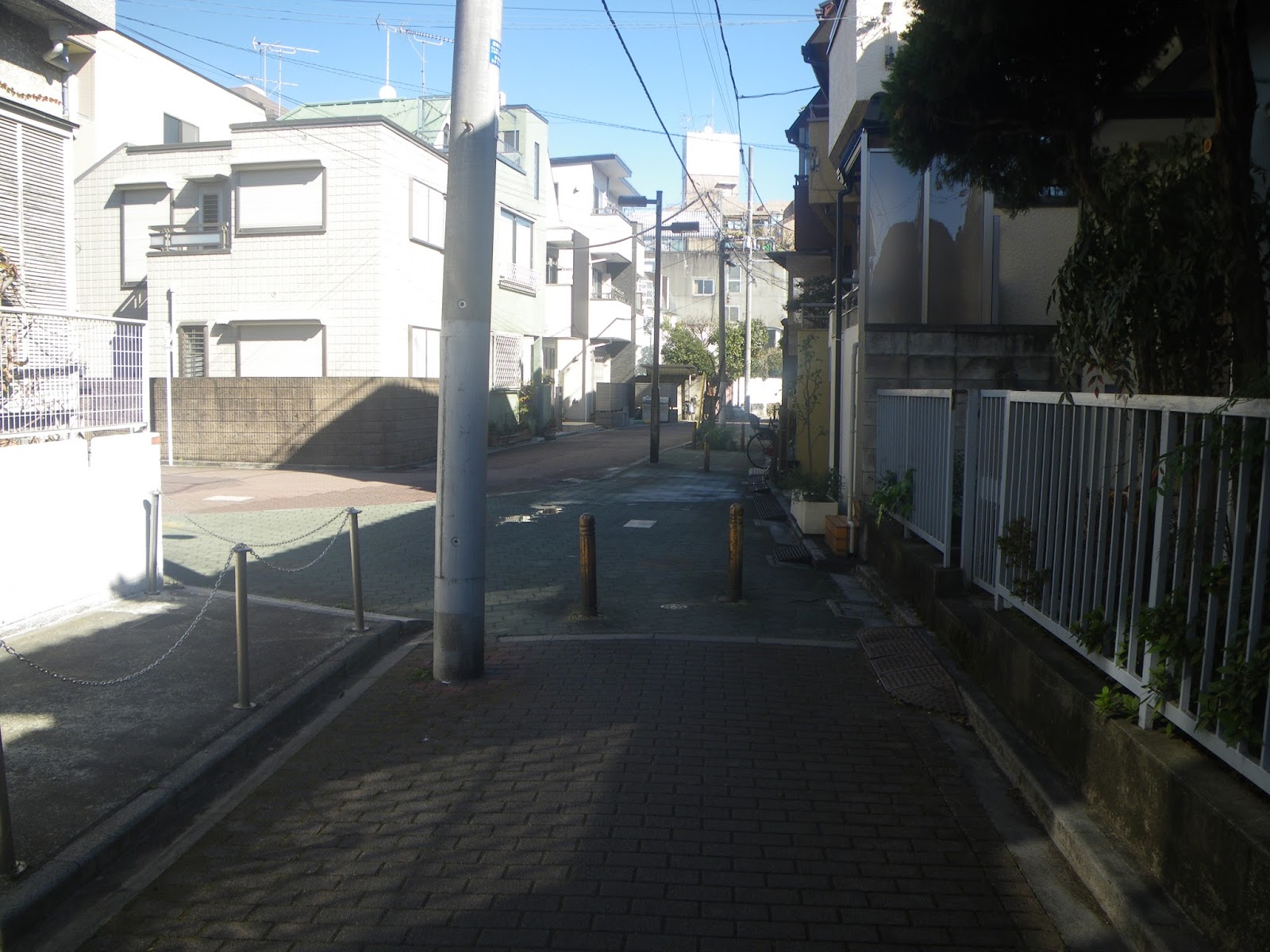 その先で、水路跡は民家に行く手を阻まれる。民家の間に細路があるが、その先には車道があり、それ以上先に進むことはできない。このあたりが窪地の谷頭であろう。『杉並の川と橋』には、その昔、この辺り、堀之内小学校の裏手に低湿地があり、そこが源流点との記載があった。民家が密集する一帯に低湿地の面影はなにも、ない。