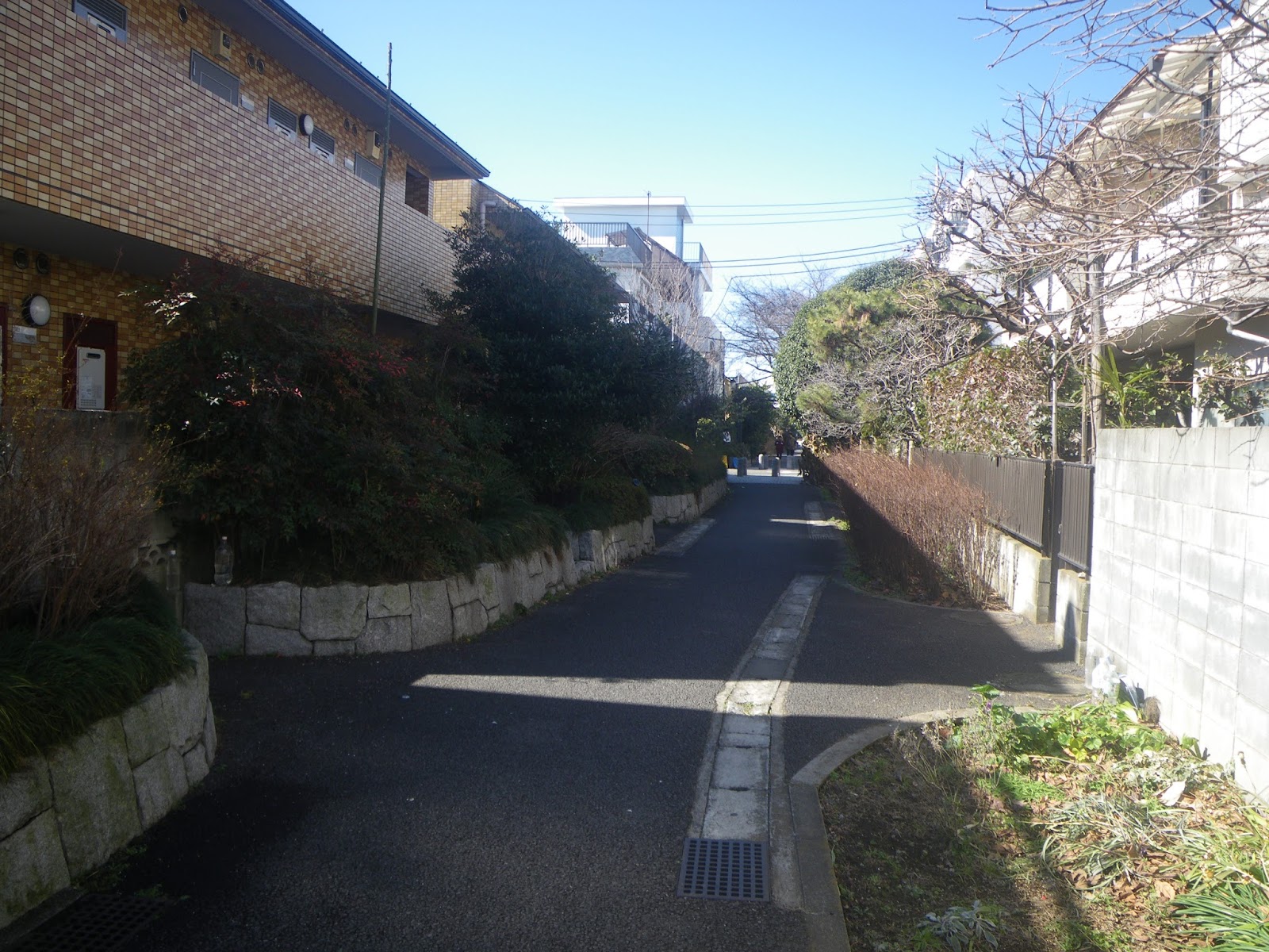西北に向かって緩やかな弧を描く道は荒玉水道道路に最接近した辺りから東北に向かい、比較的大きな車道とクロスする。