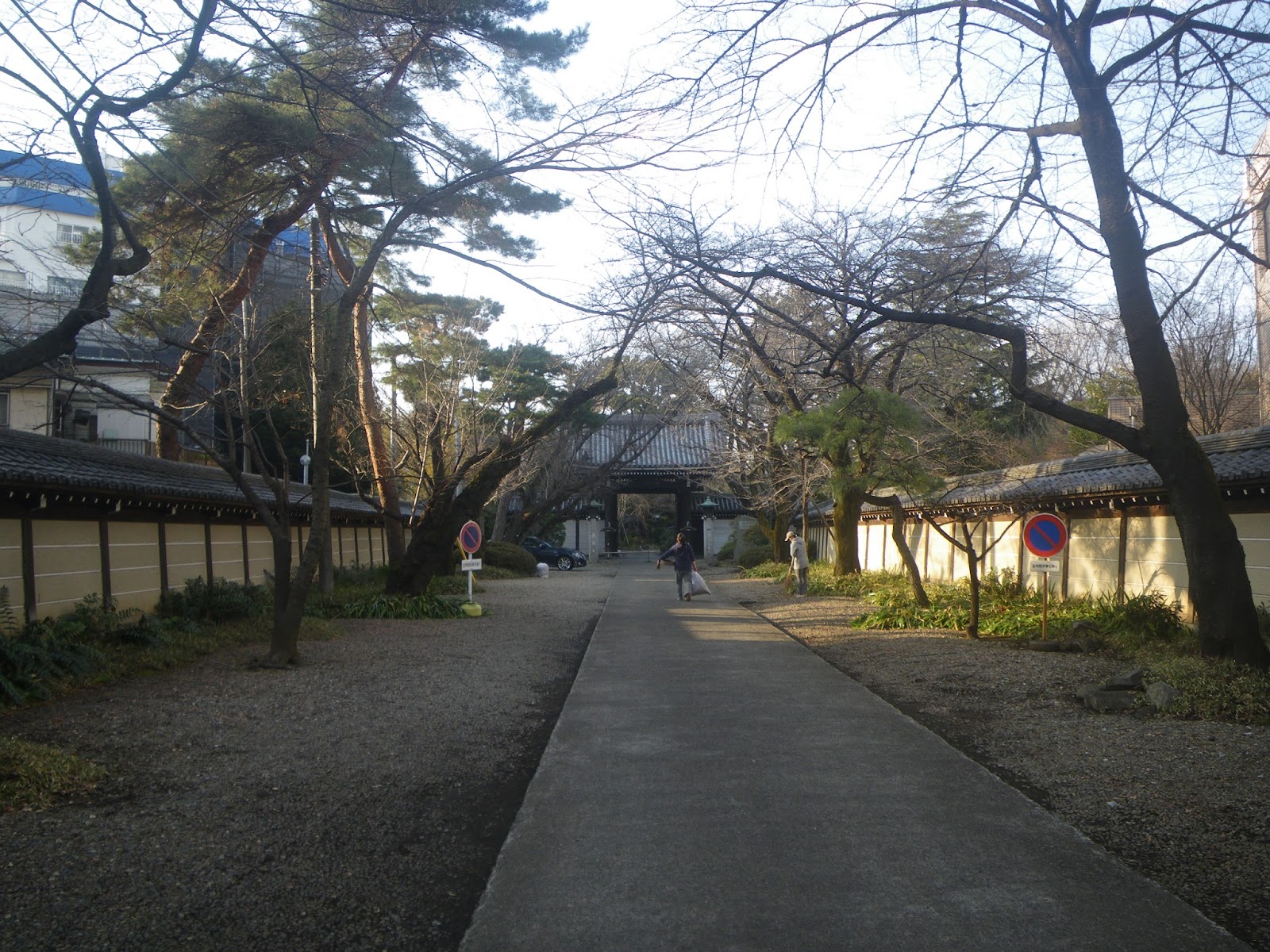 長く広い参道の先には山門が見える。境内にある新鏡ヶ池を見ようと思ったのだが、参道に「檀家以外の立ち入りはご遠慮ください」、といった案内があるため立ち入りは遠慮する。