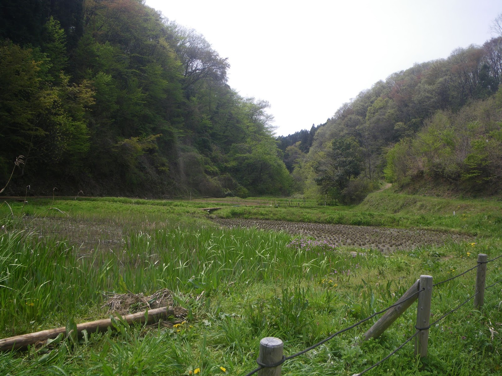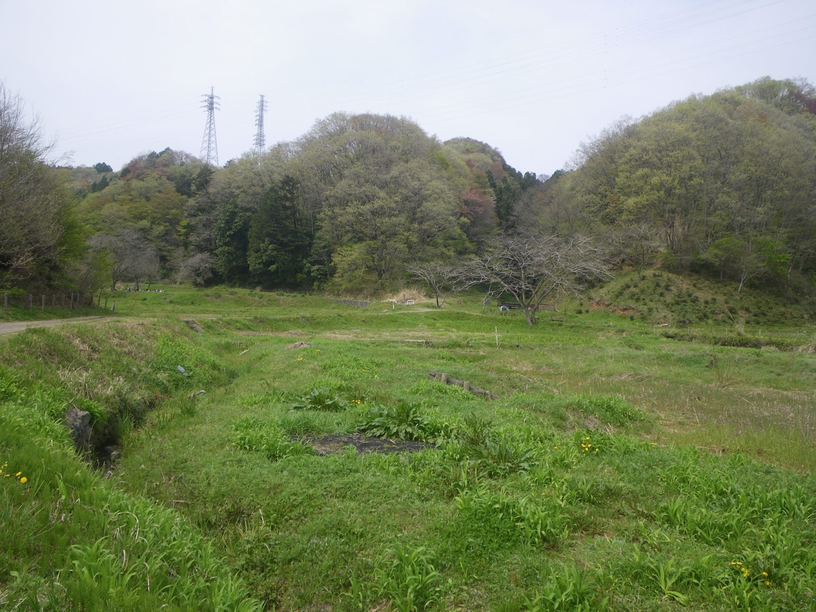 分岐点から先は美しい谷戸の景観。自然観察らしき学生さんたちも見受けられるが、谷戸の最奥部に近づくにつれ、丸太が道に倒れるなど道が荒れてくる。少々不安になるあたりに「石山の池」への道案内があり、気を取り直し先に進む。