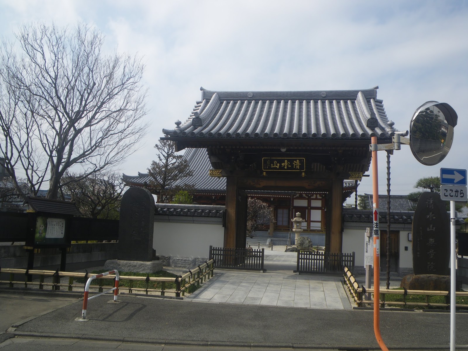 重層の入母屋造りの山門を潜り境内に。本堂左手に本堂、鐘楼堂、仏殿の案内