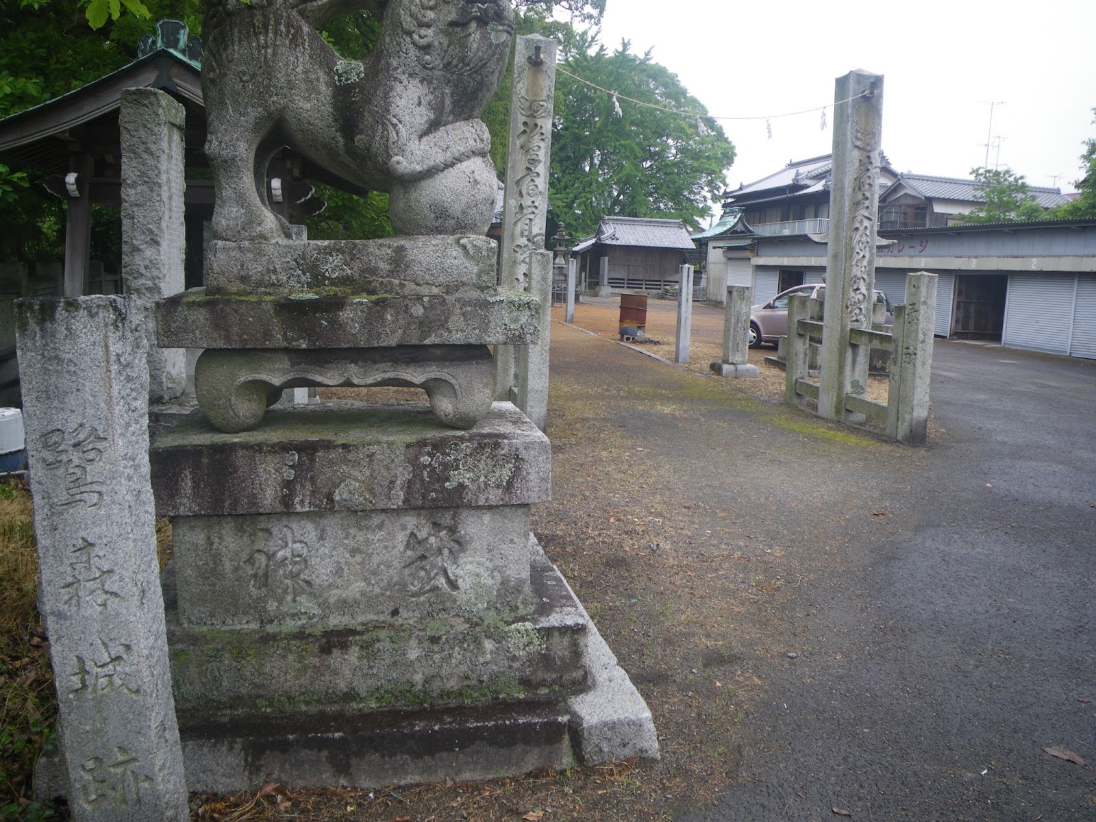 社殿にお参りし、境内に鷺森城跡の遺構でもないものかと彷徨うが、特に何があるわけでもない。本殿向かって右手の三穂神社脇に「藩政の頃年貢米庫倉の跡」と刻まれた石柱があった。
