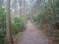 車のデポし、たところから、等高線が北西に切り込んだ尾根の間の道を10分弱すすむと、道端に「得能公忠魂碑左」の木標。しっかりした道でもなく、前途を少々危ぶむが、数分で尾根に向かう整備された道に出る。