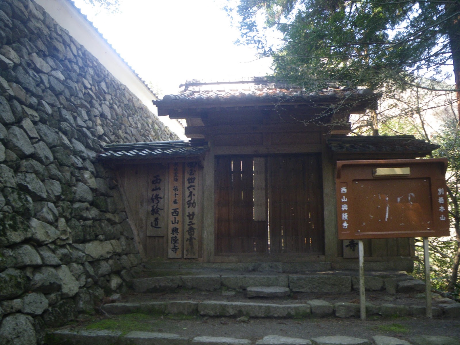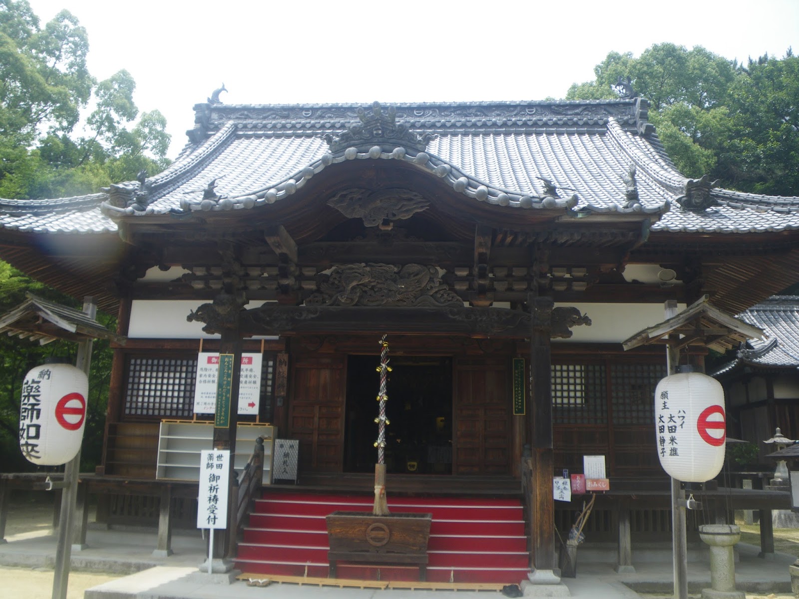山門を潜り本堂(薬師堂?)にお参り。堂宇の前に3つの案内。