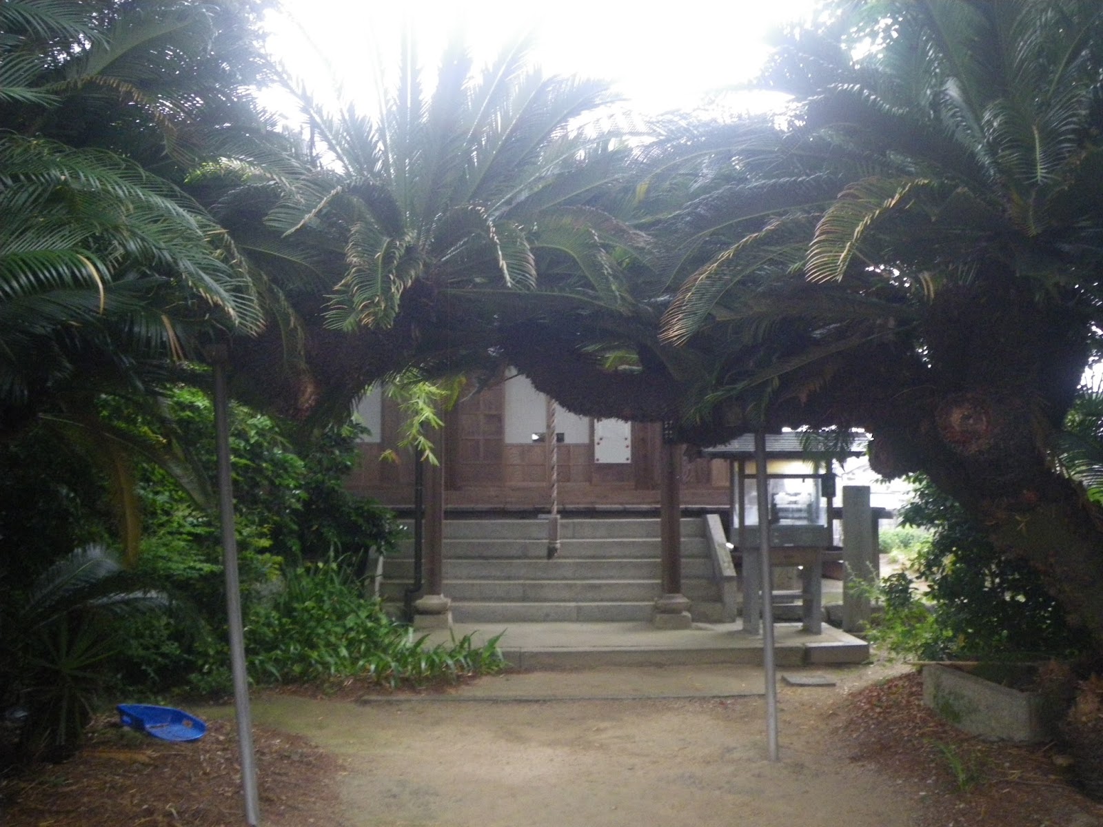 予讃線伊予三芳駅の南東、大明神川の左岸にある真言宗御室派のお寺さま。両側から伸びたソテツ(?)を潜り本堂にお参り。通宣との繋がりを示す案内は特に見当たらなかった。