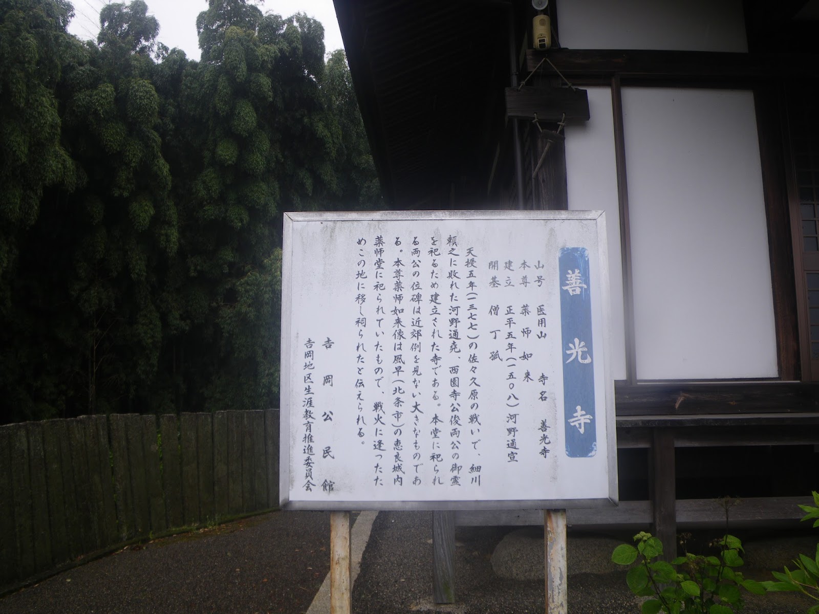 通宣(刑部大輔)が通堯、西園寺公俊両君公の霊を祀ったのが善光寺(安川)である。当寺には両氏の位牌が残されている。