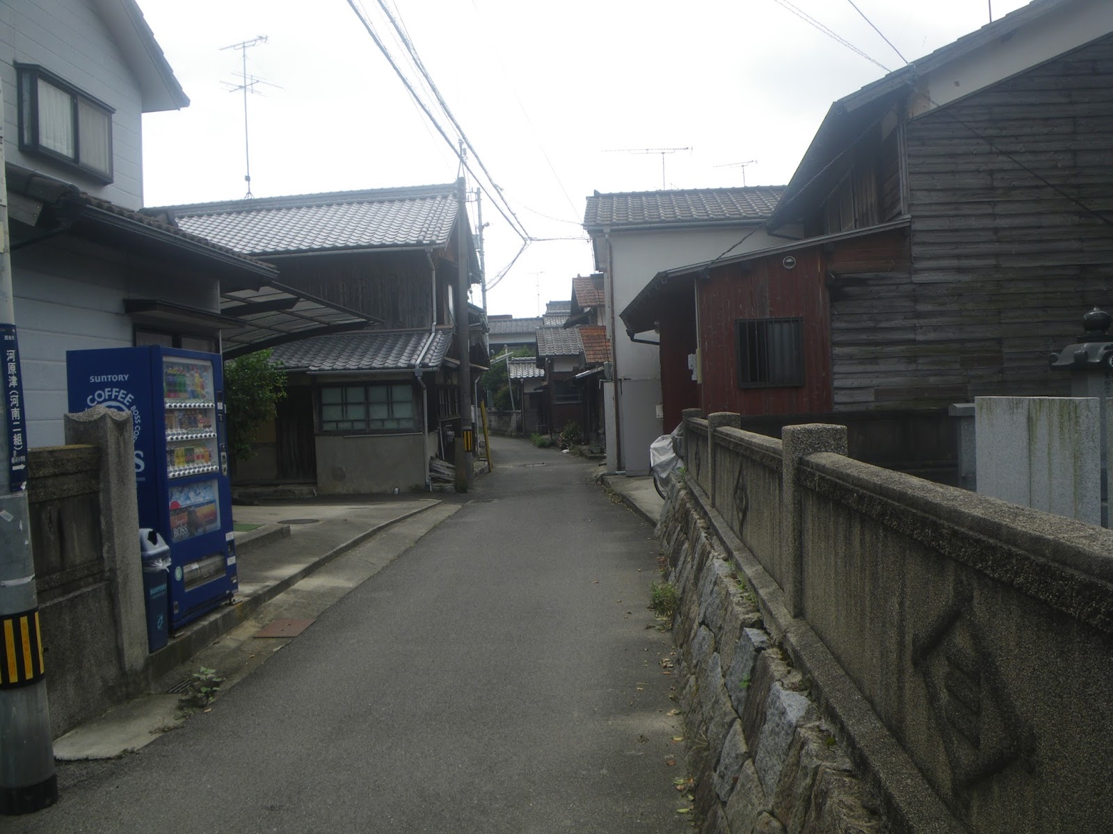 光明寺から大明神川を少し下ると、予讃線が天井川となった川床下を走る。流路定まらぬ暴れ川の頃はそうでもなかったのだろうが、永禄年間(1560-1571)に現在の流路になり、それ以降治水工事により流路が固定されると、大雨のとき上流から押し流された土砂が積み上がり、それを掘り上げて堤防を積み上げる。その繰り返しにより堤防そして川床が平地より高くなり、光明寺のある三芳地区より下流では家の屋根より川床が高い天井川ができあがった、と言う。