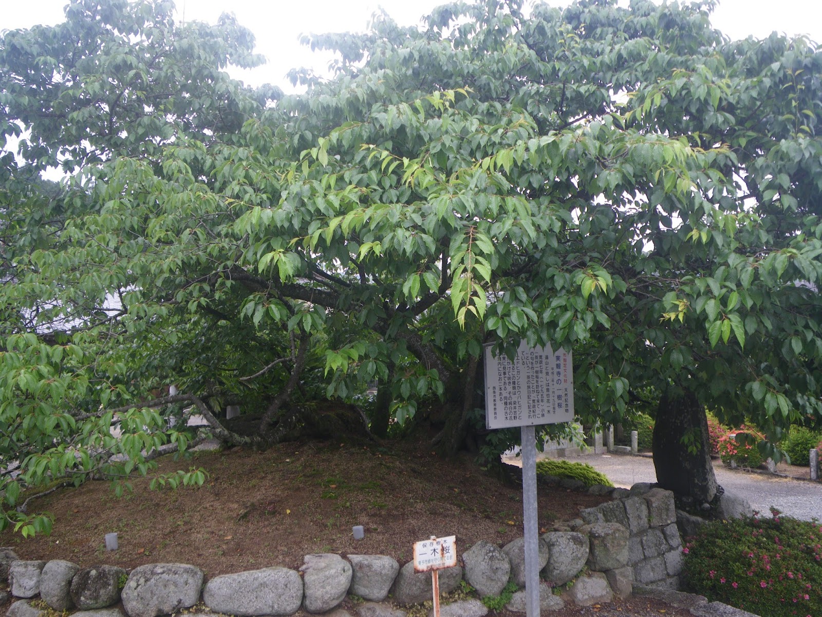 境内に河野氏ゆかりの案内でもないものかと彷徨うと桜の木の前に案内。「実報寺の一樹(ひとき)桜 市指定文化財 天然記念物