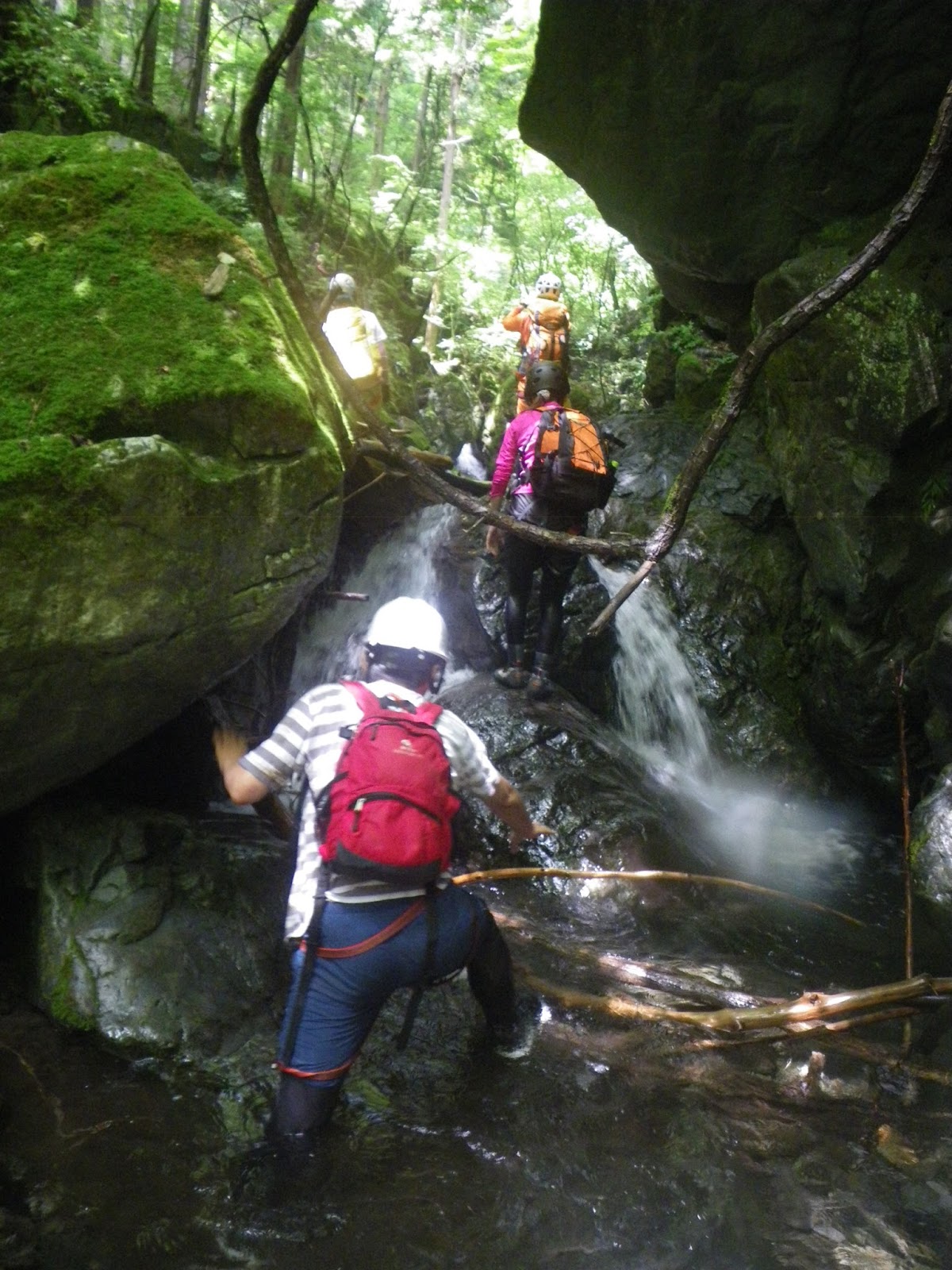 今回はじめて「美しい釜をもつ3m滝」の先に進んだのだが、これがバリエーション豊富で結構面白いルートだった。