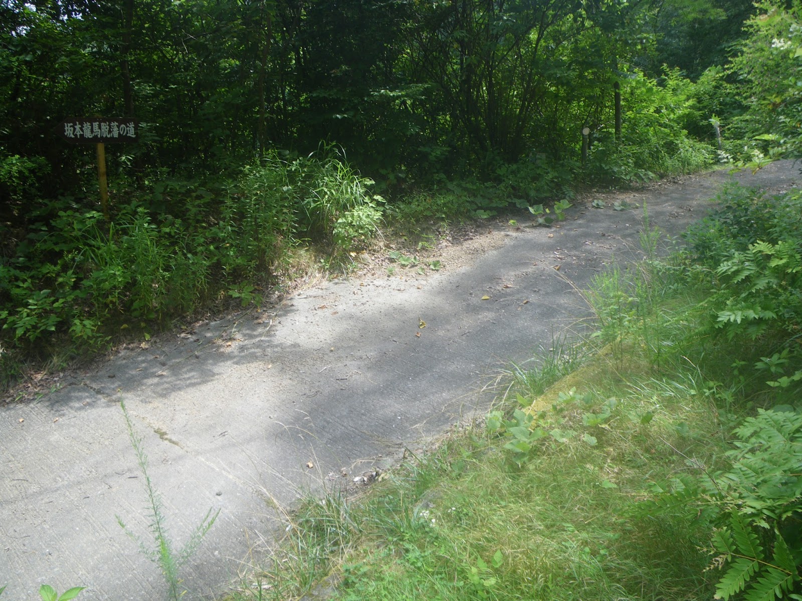 県道から分かれたその脇道を少し進むと「坂本龍馬脱藩の道」の木標があり、舗装された道から土径に入る。