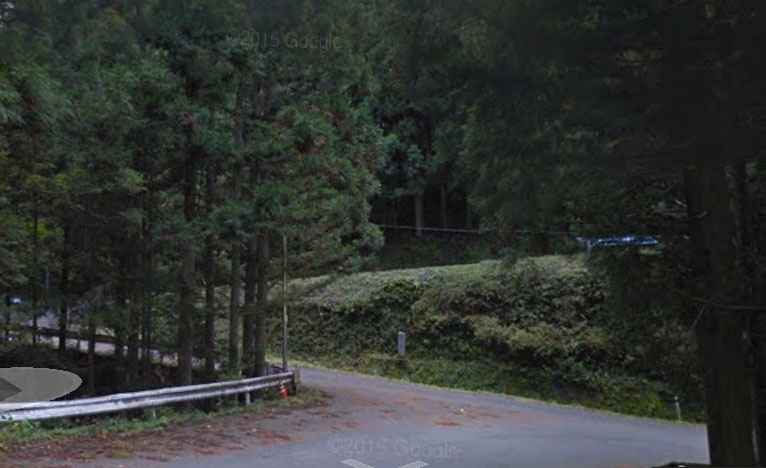 鞍部となっている榎ヶ峠から等高線を20mほど下ると、舗装された道に出る。地図には実線が引かれている道筋である。衛星写真で見る限り、河辺川の谷筋に繋がるこの林道は舗装されているように見える。舗装は河辺町域を越えた榎ヶ峠の東の西予市小松町域は、舗装はされていないように見える。山道を示す実線も破線となっている。
