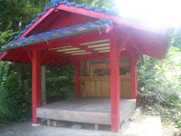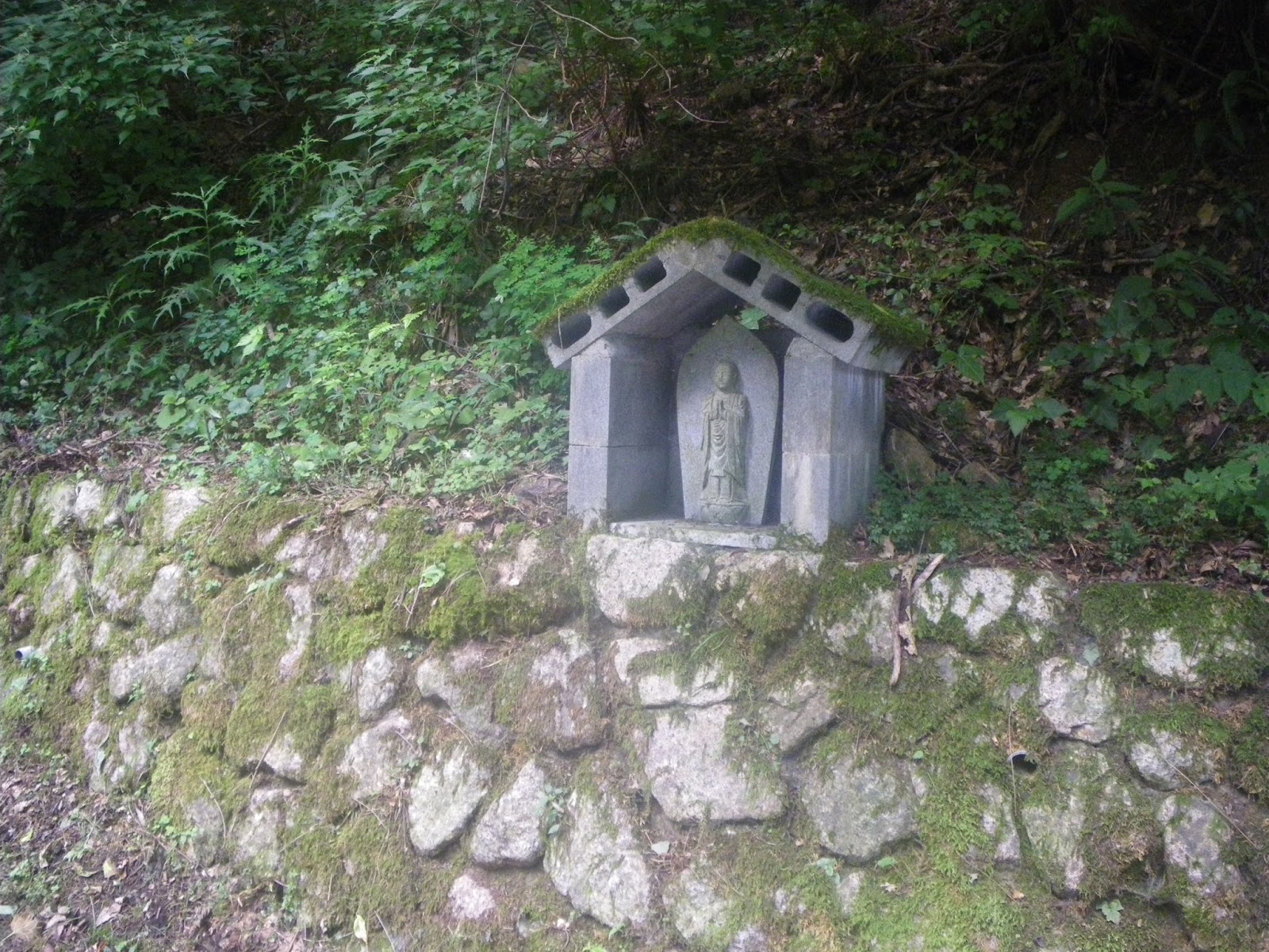 笄岩から5分ほど下ると四方吹き抜けのお堂がある。一個所だけ吹き抜けの上部の棚に石仏が祀られる。茶堂なのだろうか?地図にはお寺さまのマークがあるので、お堂なのかもしれない。