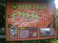 その道を更に標高10mほど下げると「坂本龍馬脱藩の道」の大きな案内がある。