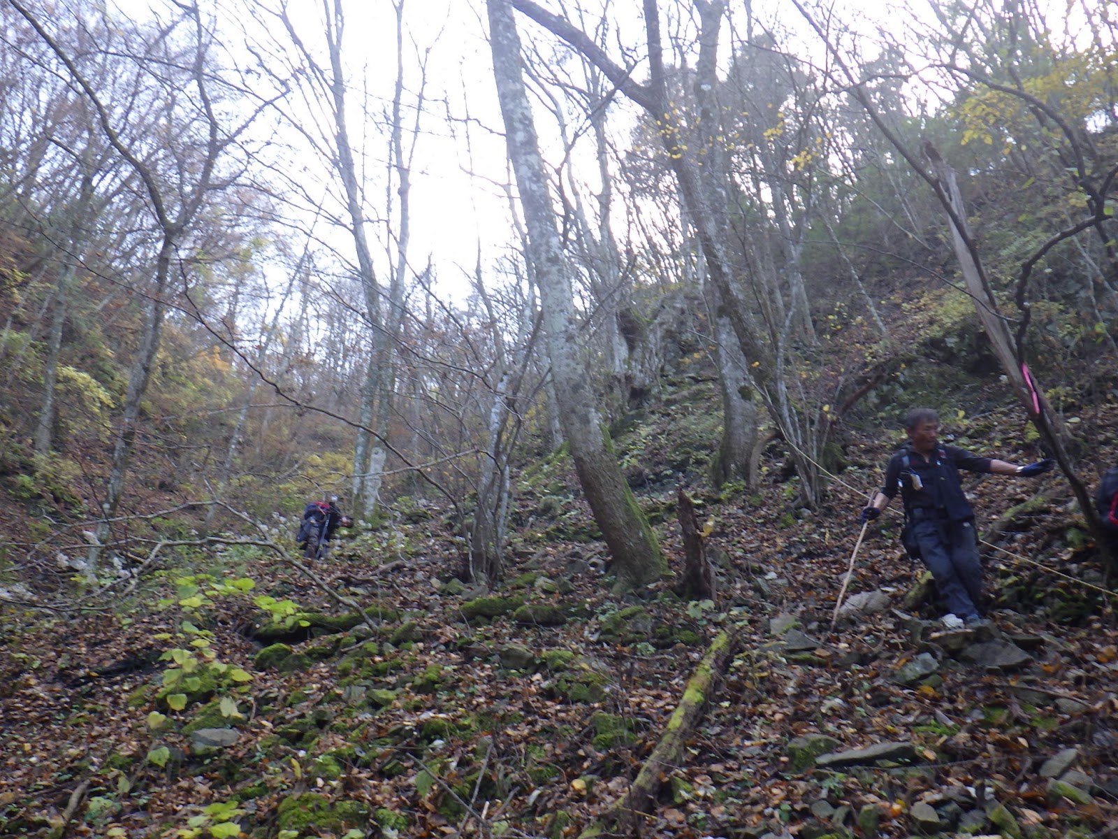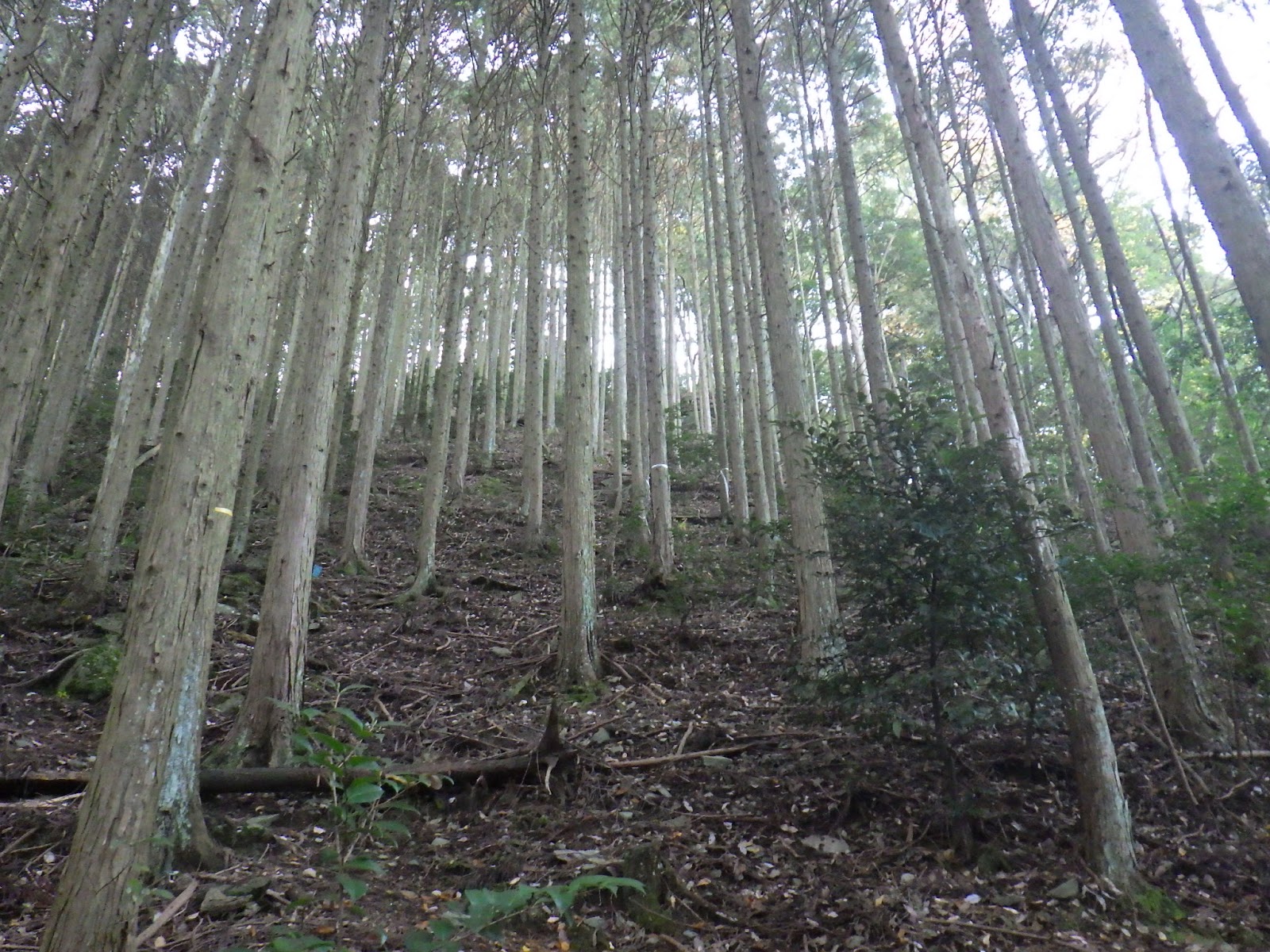 ということで、休憩後、尾根道を下ることに。果樹園へのコースは道は安定してそうだが、何せ遠回りである。地図を見ると結構勾配が急なようではあるが、ショートカットルートを選択。