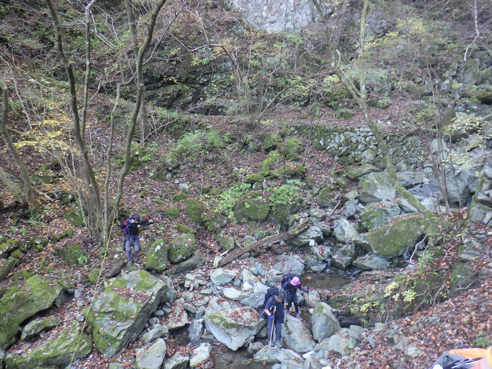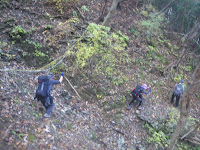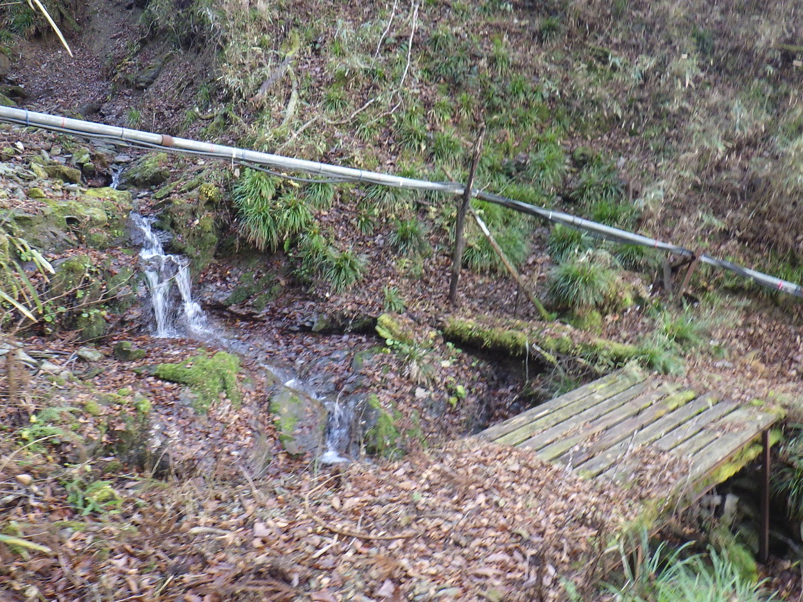 ほとんど整備されていない山道を下る。この沢道ではなく瑞泉寺へと下ると、南に突き出た尾根筋を大きく迂回して十二社に向かうことになる。足元はしっかりしないが、ショートカットのためには少々我慢。