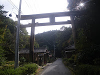 豪快な切通しが気になり、ちょっと県道142号に寄り道。切通しを抜けると無住と思える数軒の民家があり、その先に鳥居が建つ。鳥居の傍に石碑があり「砂田」とか、「昭和弐年拾月建立」といった文字が読める。昭和2年(1927)に建立されたようだ。この鳥居は石鎚神社の「一の鳥居」と称される。
