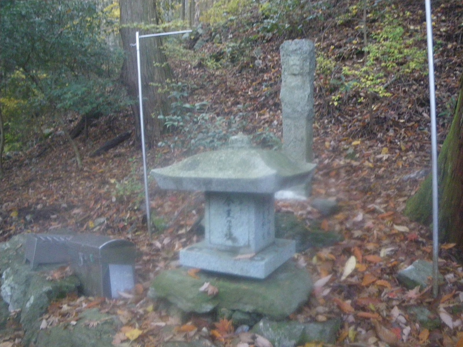 お堂脇を等高線に平行に少し進んだ後、尾根に向かって10mほど上ったところに、まことにひっそりと王子社が佇む。石仏はなく、石殿と石柱、それと石殿左前に鉄の蝋燭立てのようなものが見える。