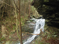 その直ぐ先にある鉄塔巡視路標識2(「高萩西線31 32」)を見遣りながら(15時25分)進むと、岩場を勢いよく水が落ちる沢がある。鉄塔巡視路故か、この沢も鉄の橋が架かり、安心して先に進む。