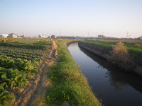 先に進もうと川筋を見渡すが、右岸はむさしの村の施設で進めそうもない。ということで、御河渡橋まで戻り、耕地の広がる左岸を進む。左手に畑地を見遣りながら進んでいると、園の職員さんから、この辺りも「むさしの村」の敷地であり、先に進むべからず、と。本来であれば御河渡橋まで戻るべきところを、温情をもって畑の畦道を進み北に東西に通る道に出るように、と。