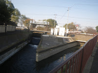 どうも、会の川の水路は葛西用水の水路より低く、洪水時に葛西用水から会の川に逆流することを防止しているようだ。で、葛西用水と並行して流れる「会の川」の水路は加須市河口の調整ゲートで葛西用水下を潜り、中川に流されているとのことである。