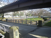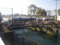 南に進み、南方用水路を越え御河渡橋に。先回の散歩で「欄干や親柱などは古そう」とメモしたが、今回橋桁を見ると、結構新しい造りのようであった。