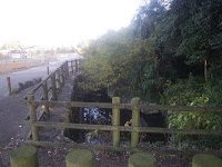 会の川橋梁の東側が如何なる風情か、とりあえず会の川橋梁まで戻る。この橋梁は明治36年(1903)建設されたもの。会の川に架かる橋はほとんど昭和10年(1935)頃の、会の川河川改修の頃建設されているので、とすれば、会の川に架かる橋の中では現存する最も古い橋と言えるだろう。橋台は煉瓦造りで当時のものだろうが、橋桁は後年に架け替えられたようだ。