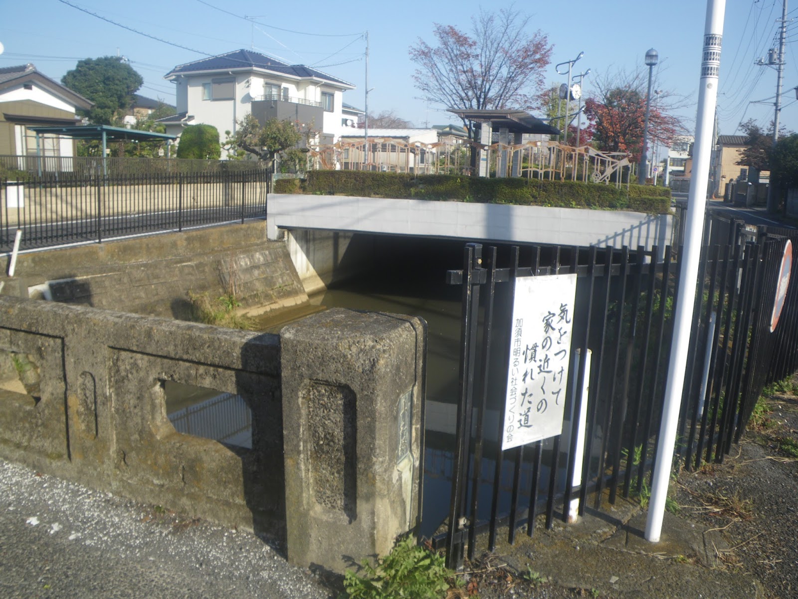 源頭部は加須市東栄1丁目辺り(加須駅の東)というが、暗渠ではっきりしない。地図を見ると東に流れ久下浄水場の少し西で開渠となり花崎駅の北を通り、東北自動車道の手前で南に折れ、東武伊勢崎線を越え更に南に進み青毛堀川に落ちる。