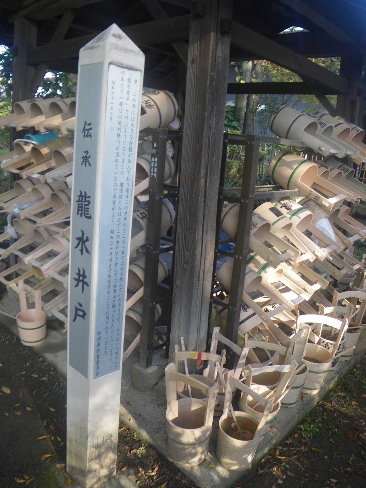 このあたり一帯は以前利根川が流れており水質がよく、昭和20年頃までは生活用水として利用されていた」とあるが、この白龍は村人を悩ませていたようで、教蔵上人が退治。頭と尾があったところに銀杏を植えた。頭はこの寺の大銀杏、尾は、少し北の諏訪町にある諏訪神社の銀杏がその場所と言う。