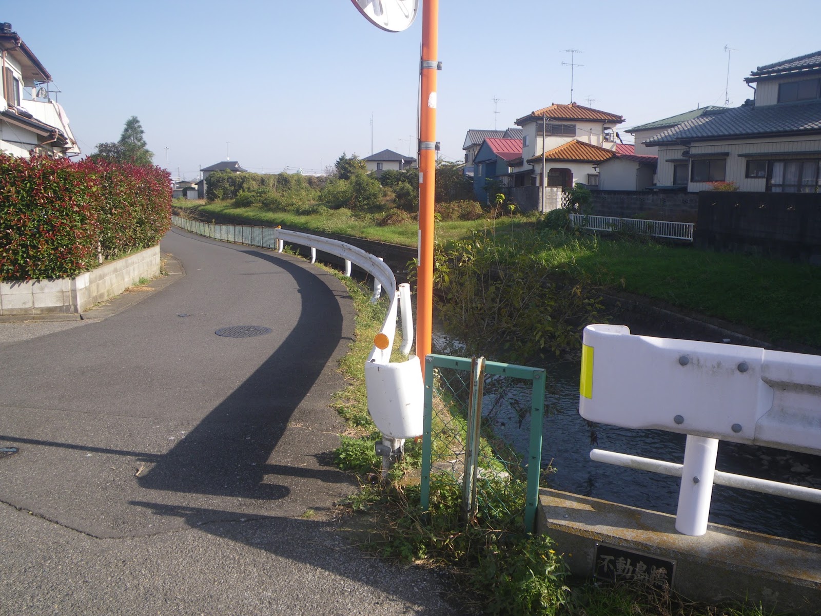 Google Street Viewで会の川の右岸をチェックすると、駅前通りを会の川手前の加須駅入口交差点を左に折れる道筋に、それらしき面影の町並みが残っていた。地区も土手とある。土手地区を進むと国道152号に合わさり、そこから先は不動岡地区に入り不動岡不動尊方面・羽生へと旧道は続いているようだ。