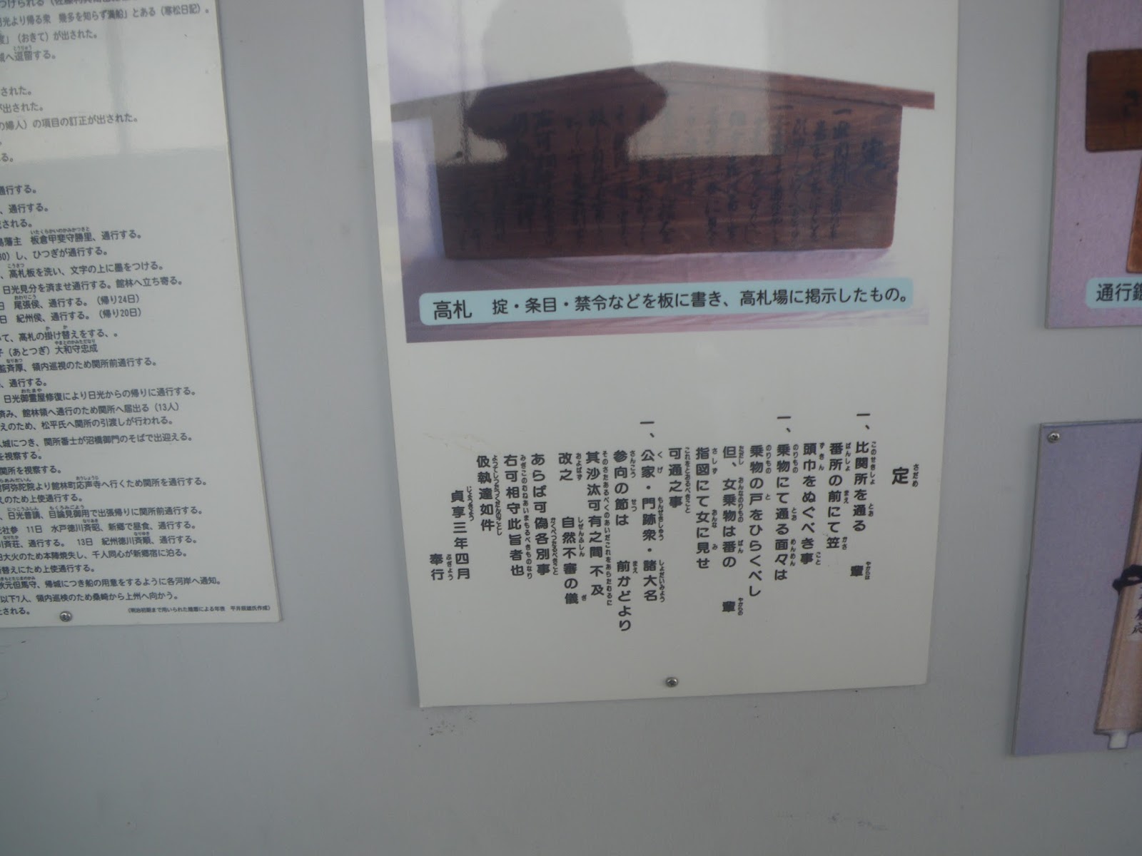貞享三年四月 奉行」と書かれた高札が記されていた。