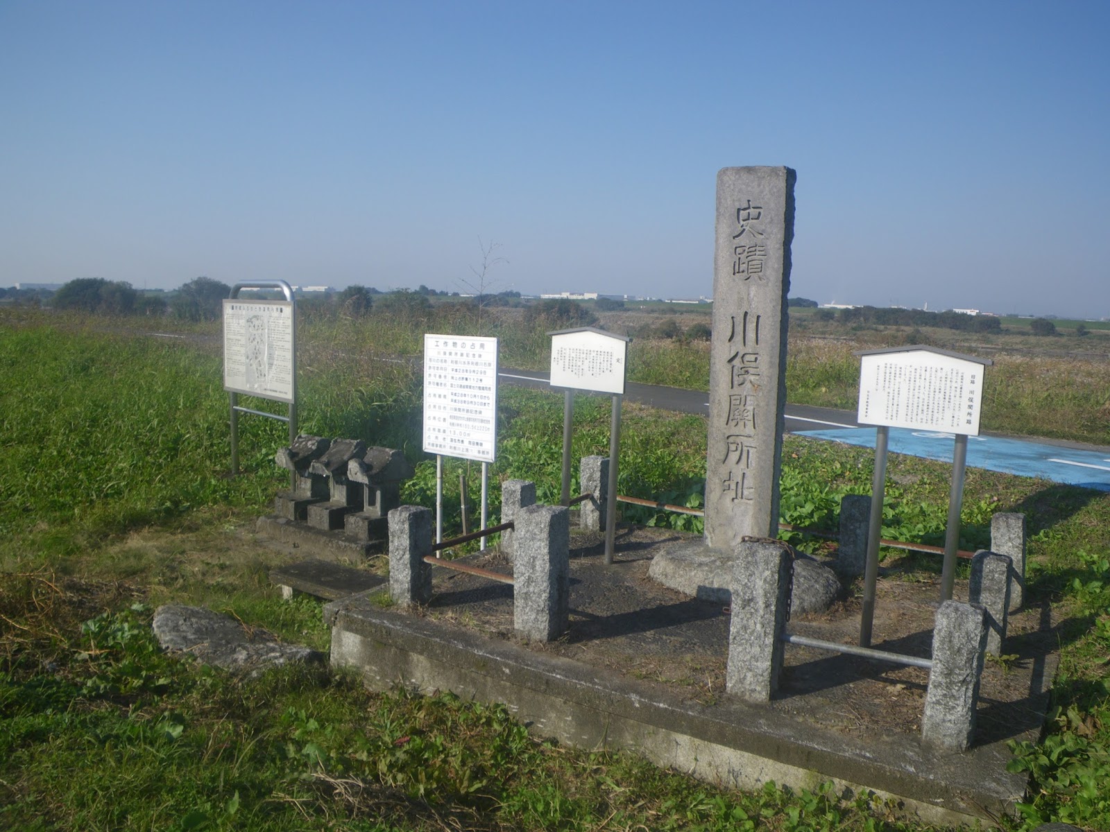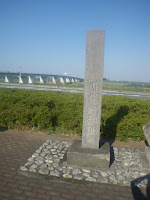 「道の駅 羽生」の情報コーナー兼休憩所にあった川俣関所跡にちょっと立ち寄り。昭和橋南詰めの少し上流に石碑が建つ。案内には