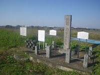本来は利根川の100mほど下流の土手の麓にあったものが昭和橋工事の際にこの地に移され、その石碑の脇に川俣締切跡の石碑も建てられたとのこと。ということは、会の川締切口はこの道の駅の少し東ということになる。