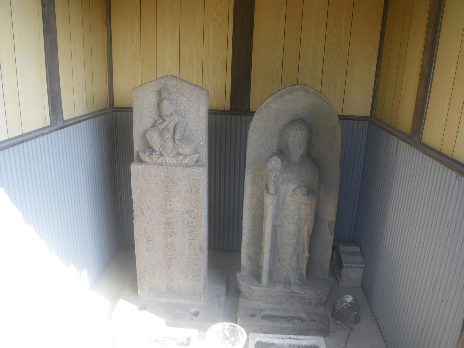 南に下り、川俣駅の西側辺りに教学院がある。境内塀の外に青面金剛像や地蔵菩薩の石仏が祀られる。境内にちょっと立ち寄り、本堂にお参り。如意輪観音像など石仏二体が祀られるお堂もあった。