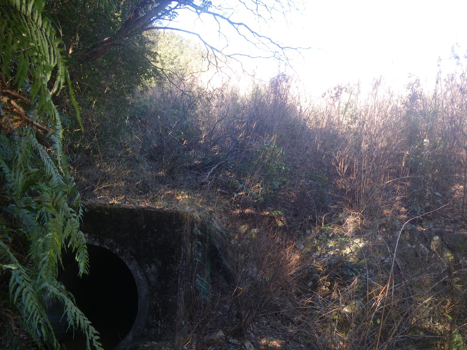 帰途、左手から水が流れる用水路に出合う。前述の『誰でも行ける意外な水源 不思議な分水;堀淳一(東京書籍)』にある溜池からの流れだろう。ちょっと寄り道。藪を掻き分け、貯水池を確認。そこから流れる水路は、途中農業用水路を堰き止め、東又川へと水を落としていた。