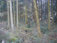 沢を遡上しながら、ふと考える。そもそも、この沢を辿る道の先に鞍部があるのだろうか、往還道としての峠があるのだろうか?片峠とは言いながら、峠と言う以上、人々の往還でもなければ、それは単なる台地、丘陵地、山地の地形に過ぎないのでは?その形状が急峻な崖としても、それは伊与木川が開析したV字谷ではなかろうか?どう考えてもこの先に往還道があるようには思えず、ほどほどのところで折り返すことにした。
