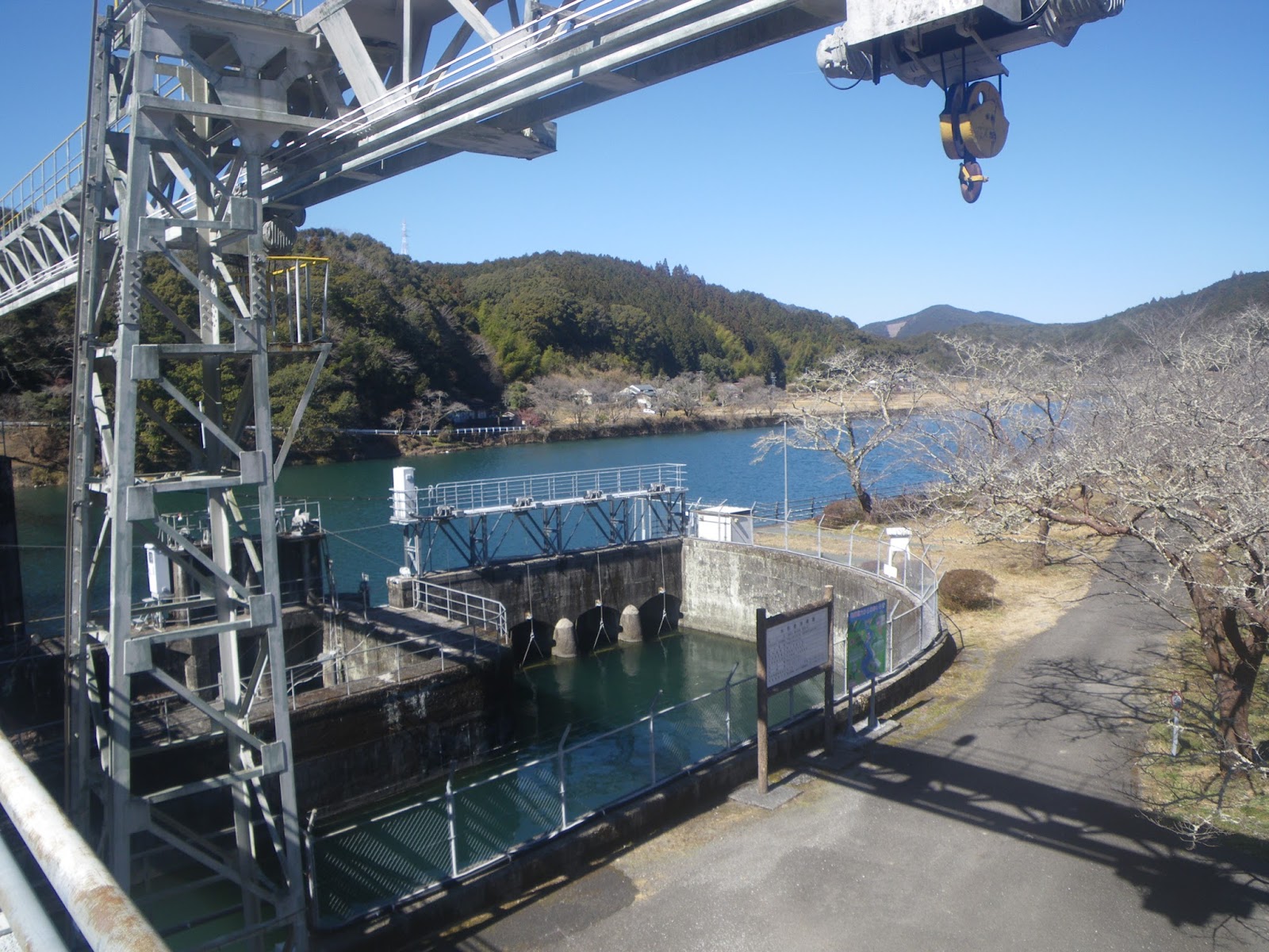 堰堤脇に取水口がある。Wikipediaに拠れば、発電用堰堤であり、水は黒潮町の伊与木川水系・市野々川にある佐賀発電所に地下導水管を通して送られるようだ。送水量は多く、四万十川の流れの半分、上流の水量が少ない時期は堰堤直下の川底から水が消えることもある、という。