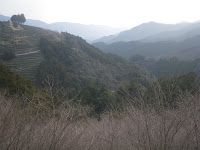 道を進むと姫野々がある。龍馬が脱藩し、佐川から朽木峠を経て新荘川筋まで下りてきた場所だ。姫野々を越え県道377号が国道と分かれるあたりから先、「布施」と冠したいくつものトンネルを抜け布施ヶ坂トンネル手前の「道の駅・布施ヶ坂」で休憩。V字に切れ込んだ新荘川の谷筋の景観を楽しむ。段々になった茶畑にも惹かれた。
