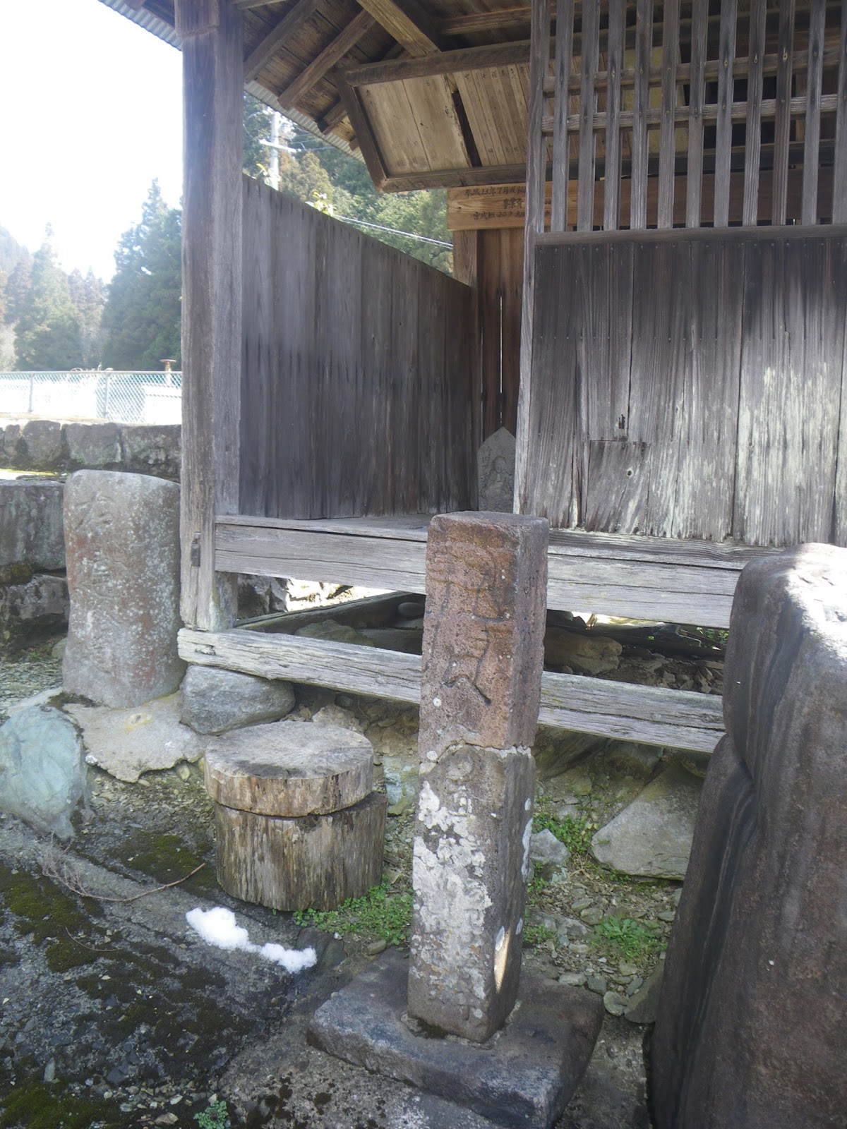 また、この間の道は谷あいの道で、明石寺から大宝寺までの長い道程では、行きなずむ遍路も多かったに違いない。そのためか、道に沿って遍路が宿泊したり、接待を受けたりしたという大師堂などの堂宇や遍路宿やその跡が目立つ。実際新谷(私注;大洲の遍路道要衝のひとつ)を過ぎると、かつては多くの遍路がこの山深い谷あいの地で宿をとっている。