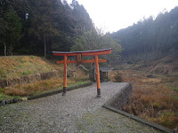 鵜川が小田川に合わさる河口を越え、乙成集落(内子町大瀬中央)に入ると道脇に「曾我十郎首塚登山口」の木標。「歩いて20分・車で5分」とあるので、左折し坂道を登ると「十郎神社」と書かれた赤い鳥居。車一台分の舗装された道を上り、そして下ると広場に出る。十郎谷公園と呼ばれるようだ。そこに小さな鳥居があり、奥の祠に十郎の首塚が祀られる。また、なにも説明がないのでわからなかったが、一段下に立つ小祠には五郎が祀られていたようだ。