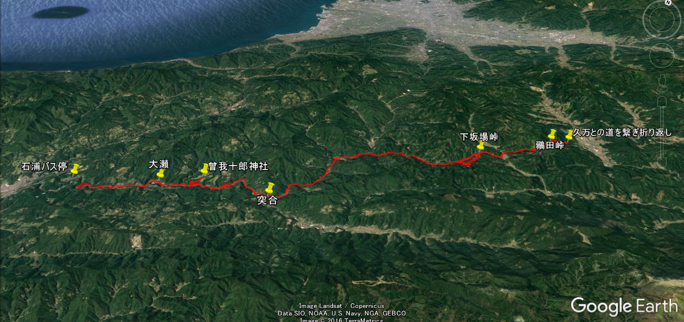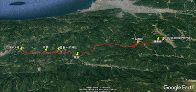 ルート取りをどうしたものかと、数年が経過したのだが、先日予土国境の坂本龍馬脱藩の道を歩いたとき、これもバスの便など望むべくもない山間のルートであり、結局「ピストン」で進むことにした。車で谷筋の進めるところまで進み、そこに車をデポし峠を越え、次の谷筋まで下った後、車デポ地に引き返す、所謂「ピストン」を繰り返し、目的の地に向かうわけである。