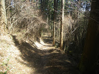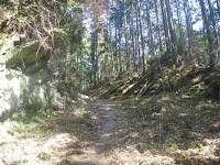 誰も通らないという真弓峠を酔狂にも上り終え、さて戻りは。来た道を戻るのも今一つ。適当な下りはないかと峠をチェック。東に踏み込まれた道がある。どこまで続くか保証の限りではないけれど、とりあえずトライ。