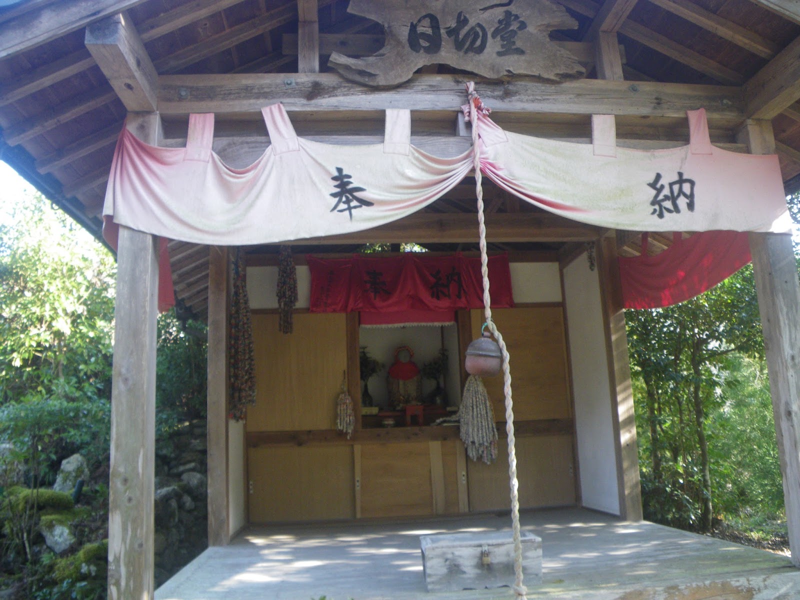 旧国道を走り一瞬国道に出るが、すぐまた旧国道を進み中通り地区を越えると国道と交差。遍路道であろう旧国道はそのまま国道を横切り、小田高校前の道を弧を描いて進み再び国道と交差。そのまま国道を横切り旧国道に入ると、道の左手、少し小高いところに堂宇が見える。日切地蔵が祀られる。